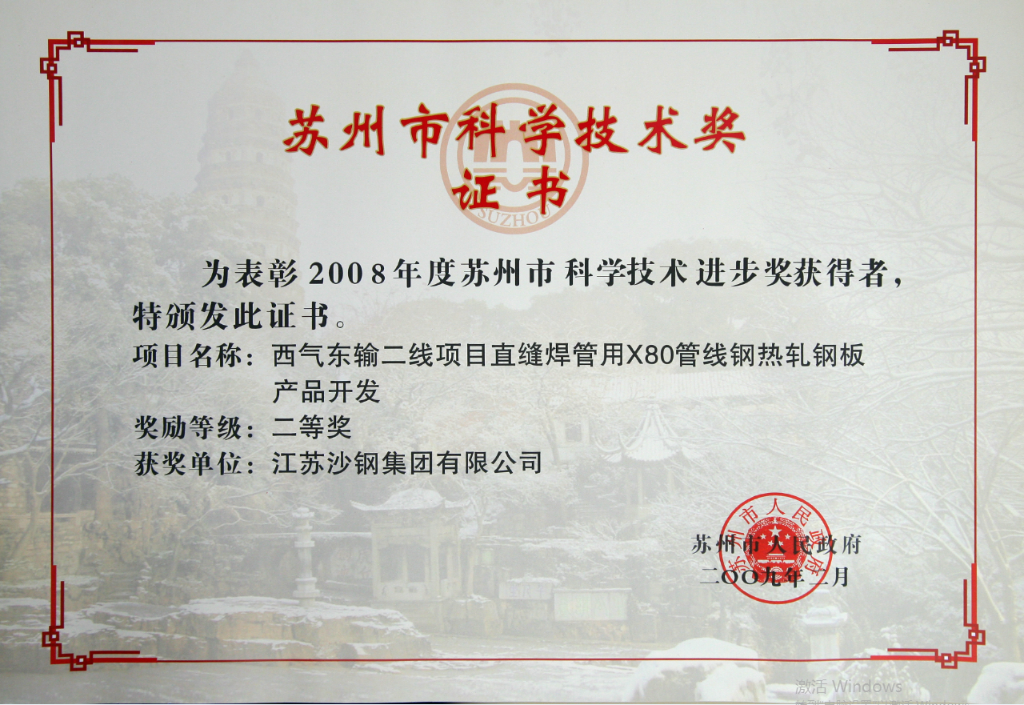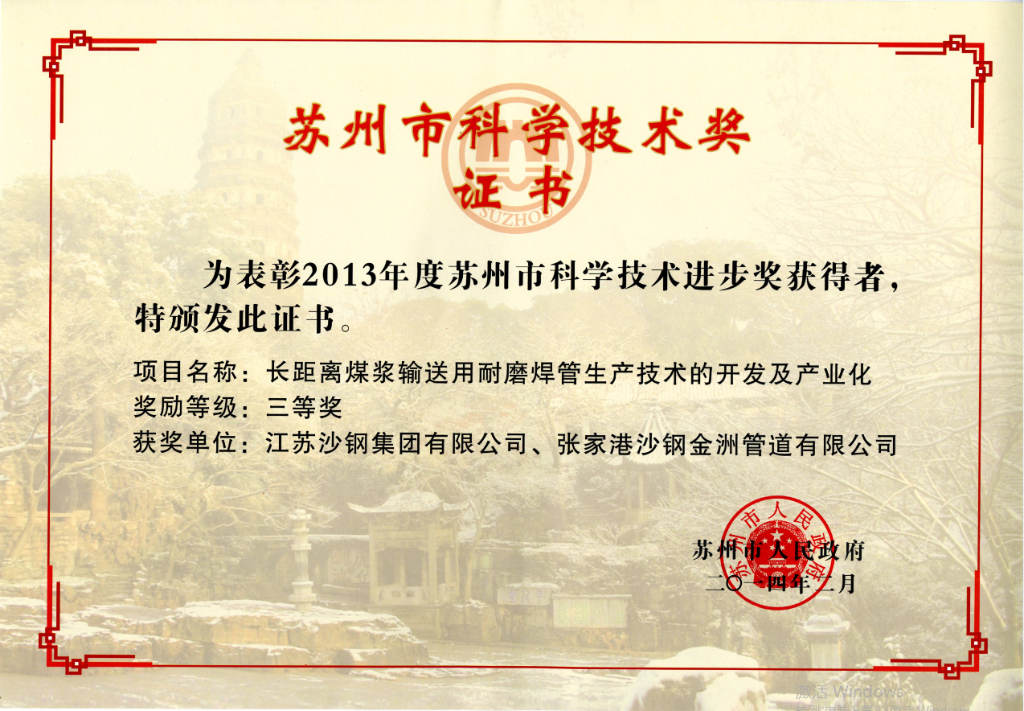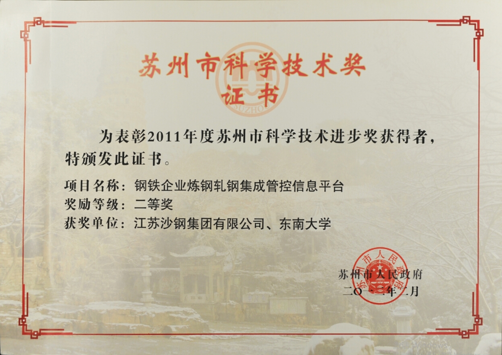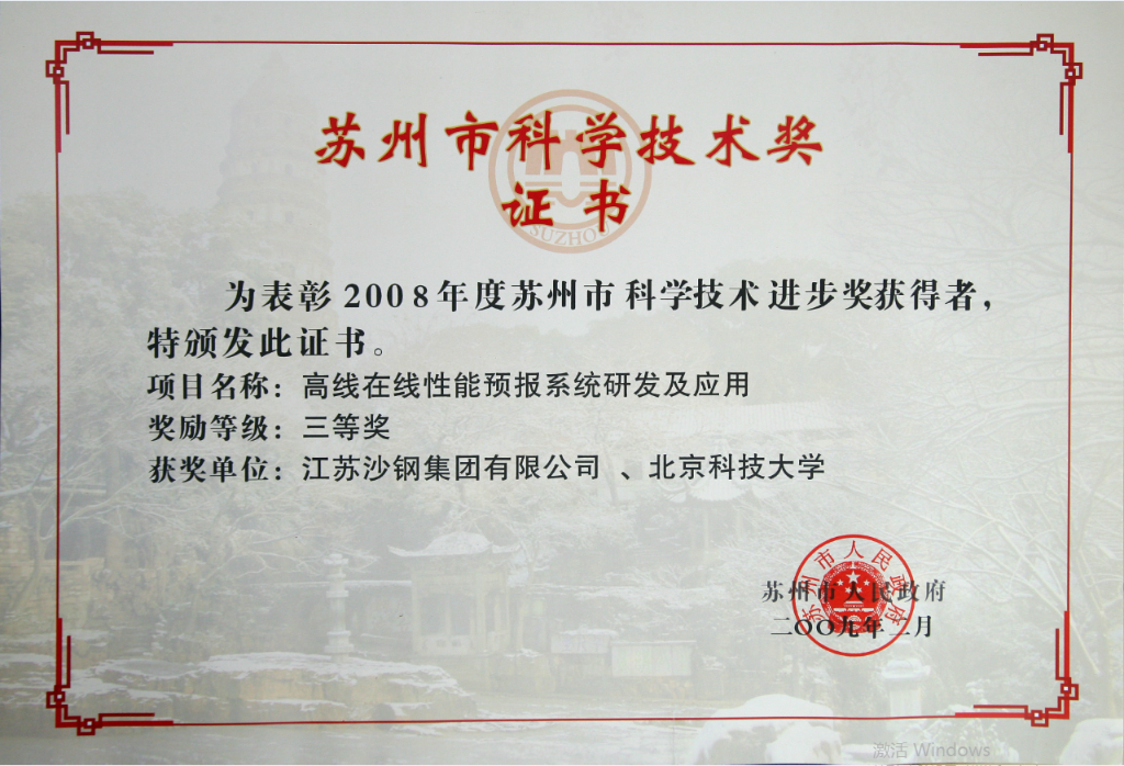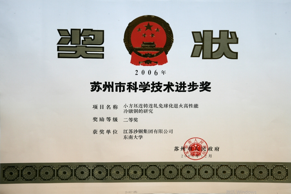 苏州市科学技术进步奖——高碳钢关键质量指标评价体系的建立与应用