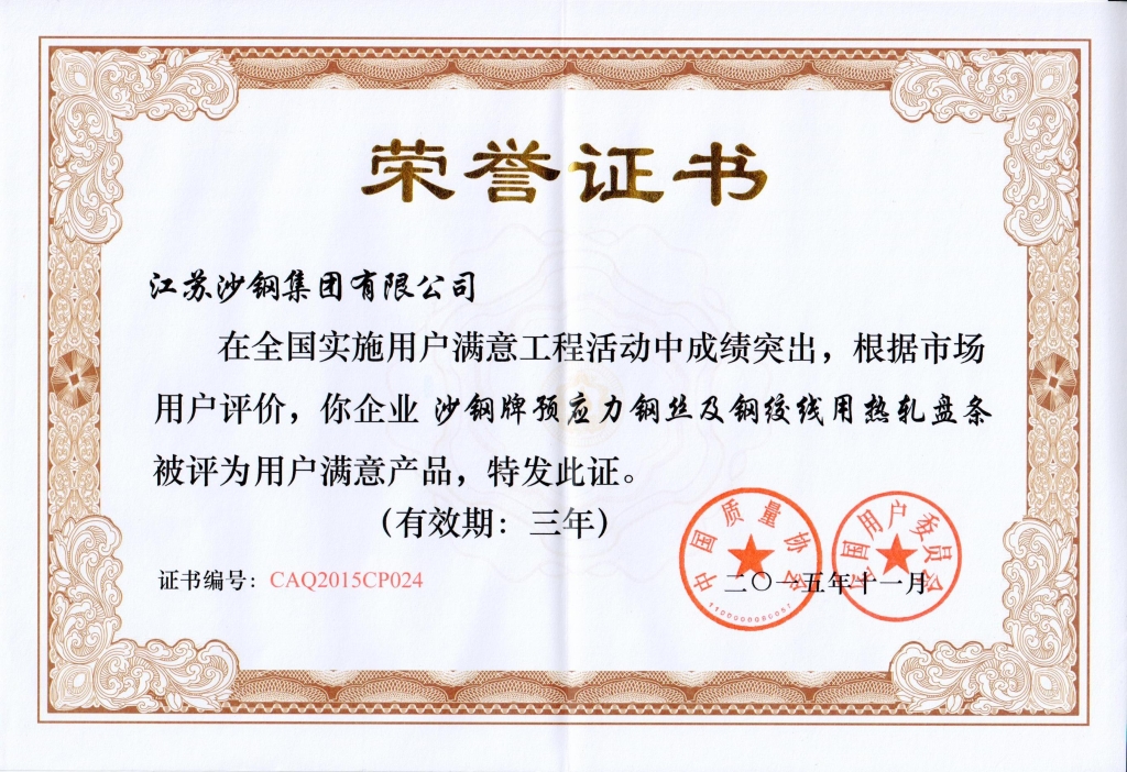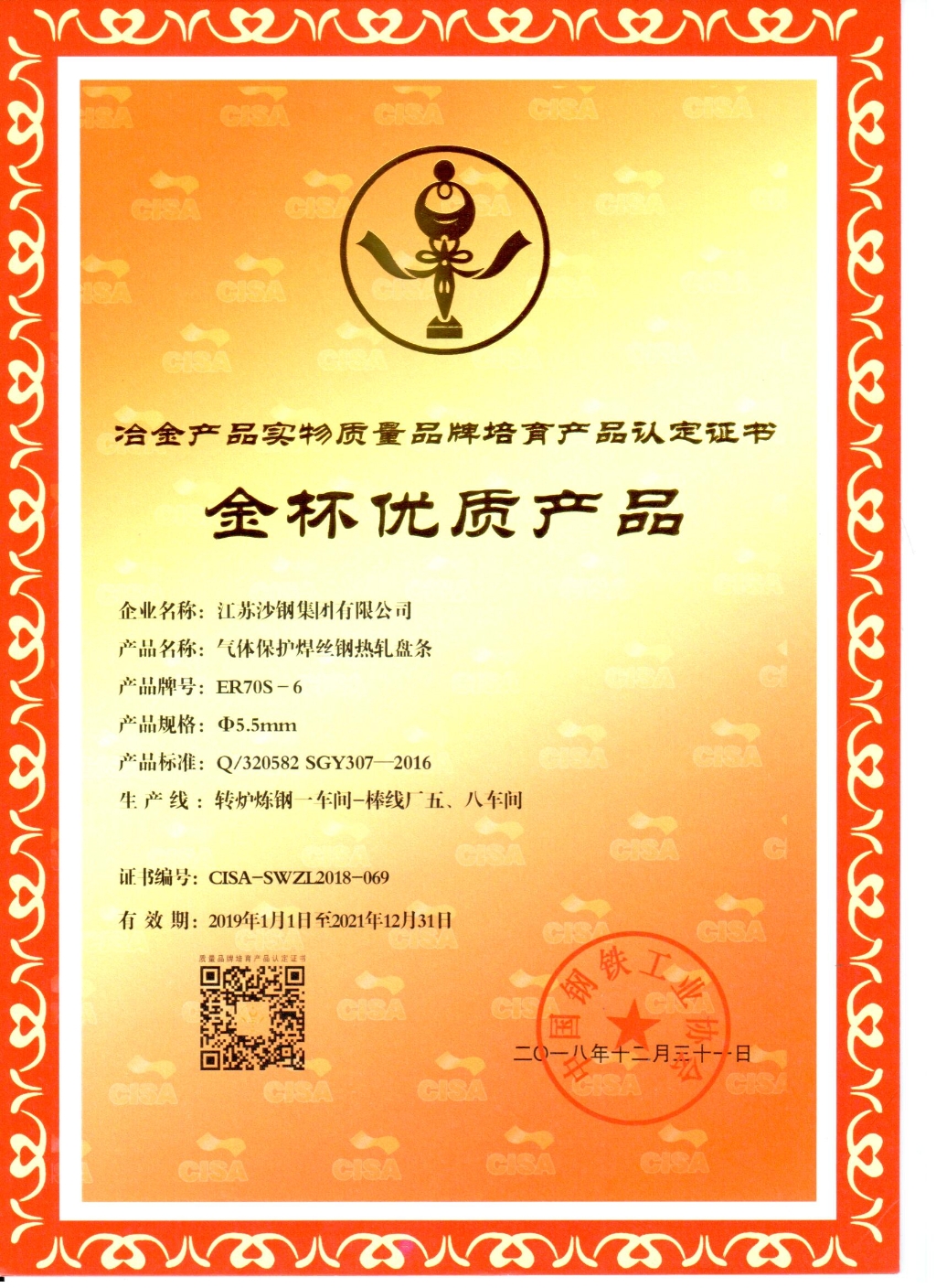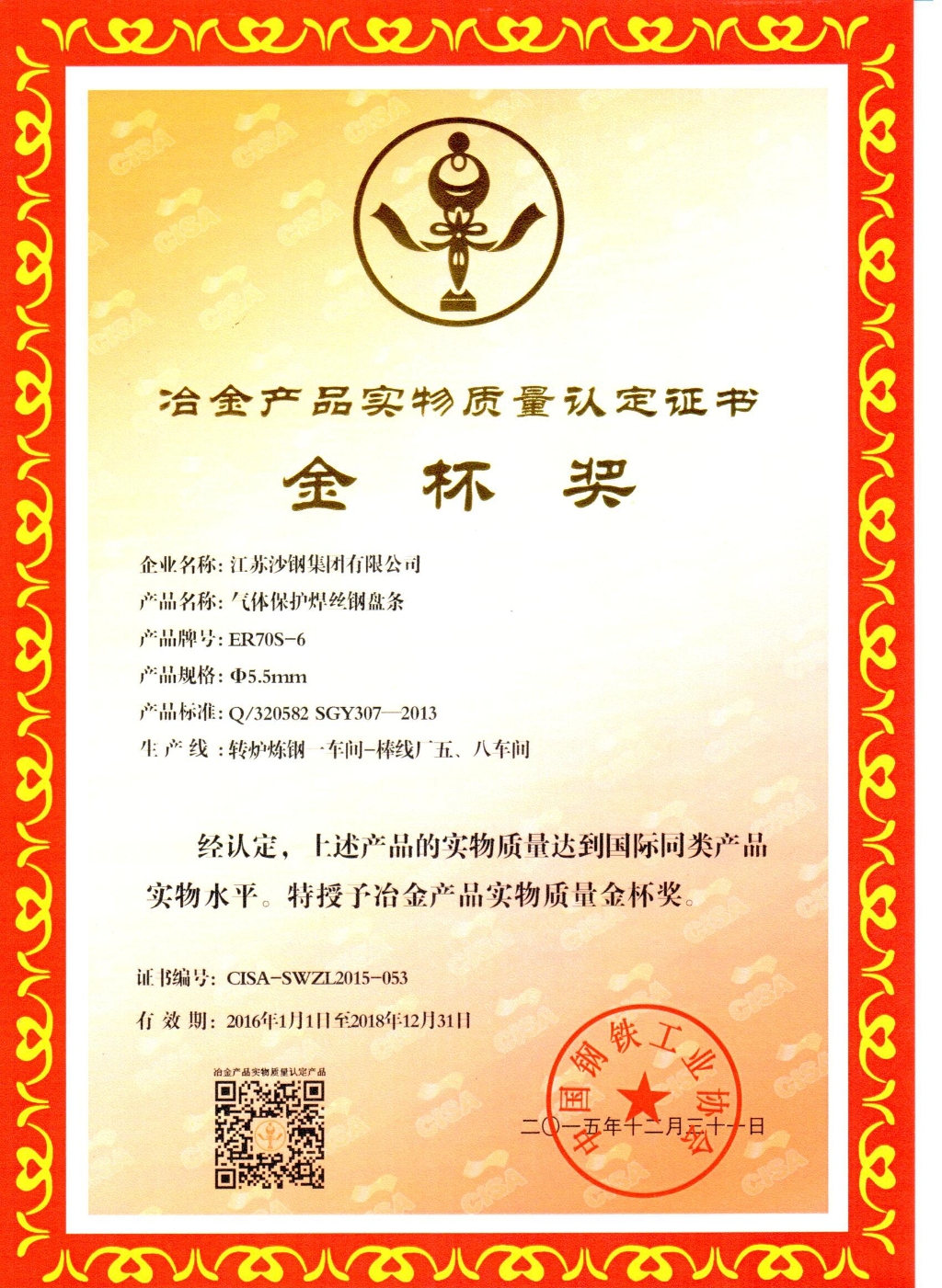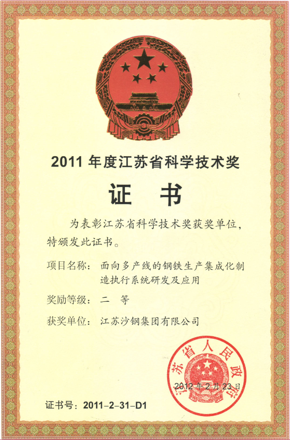 2014年度江苏省科学技术奖三等奖——高性能焊丝钢开发及工业应用