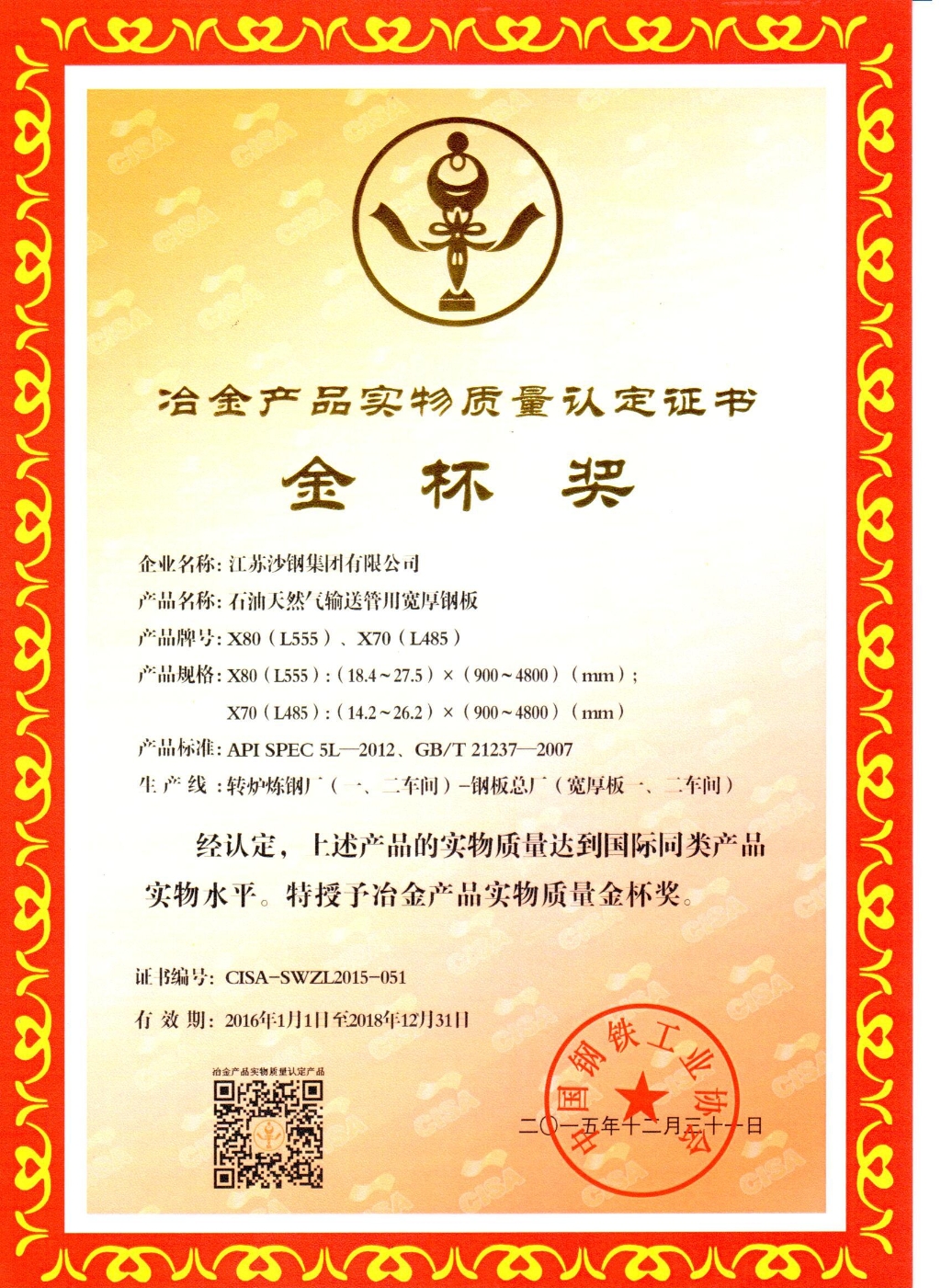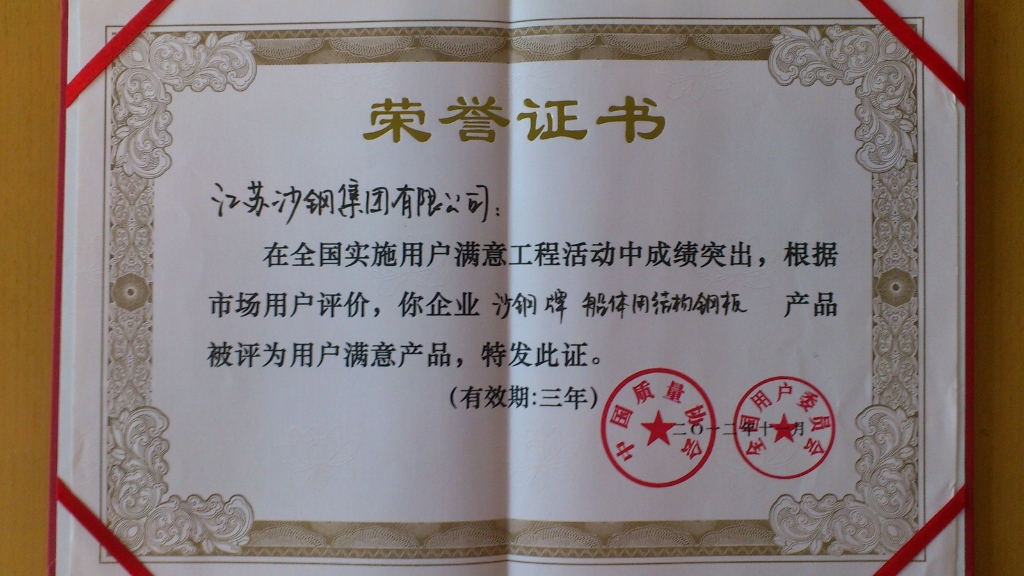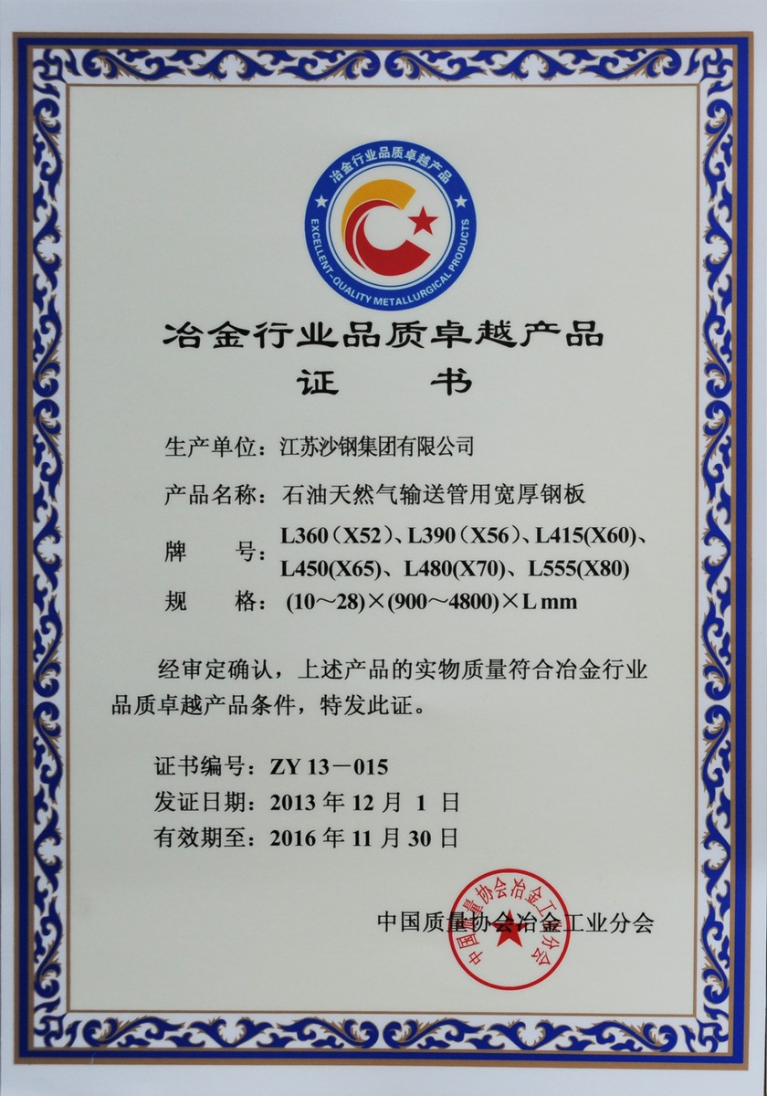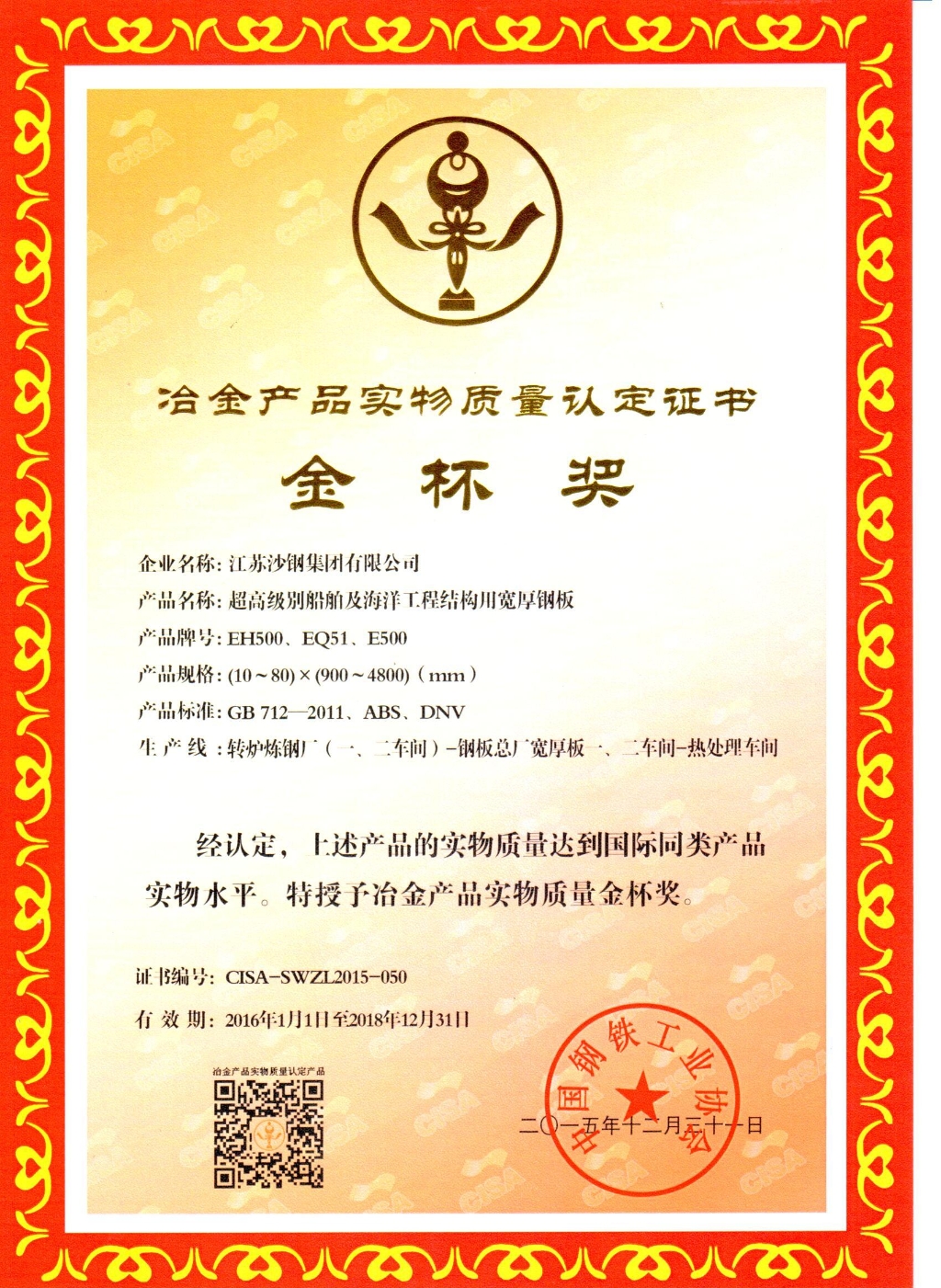 2014年度江苏省科学技术奖三等奖——海洋工程用调质热处理钢板的开发