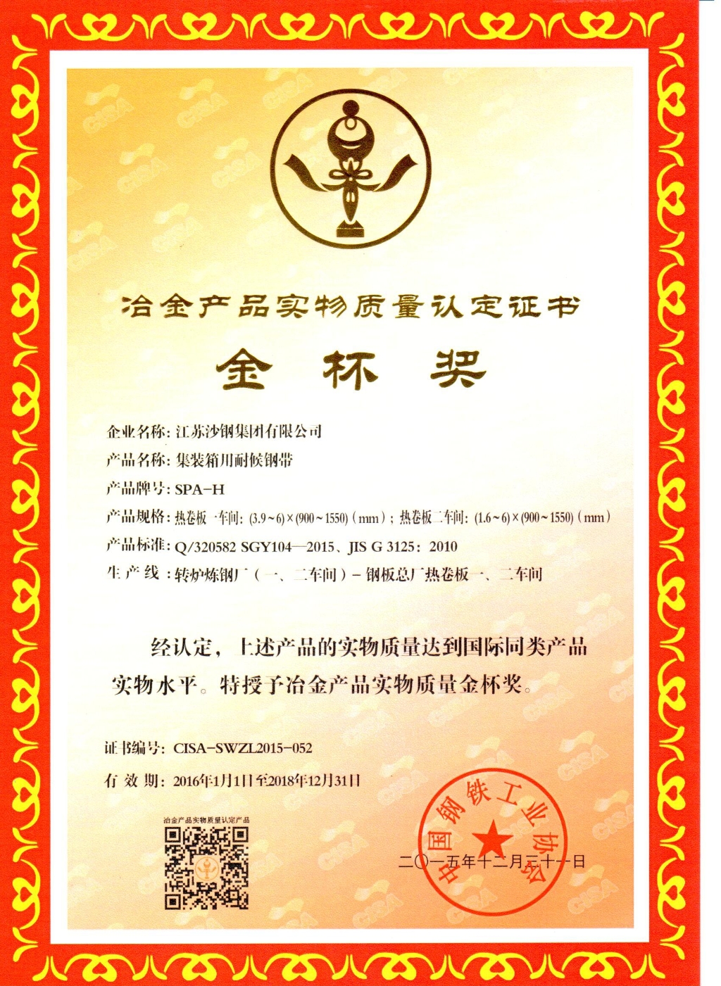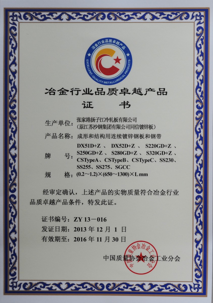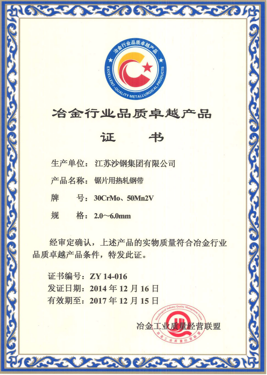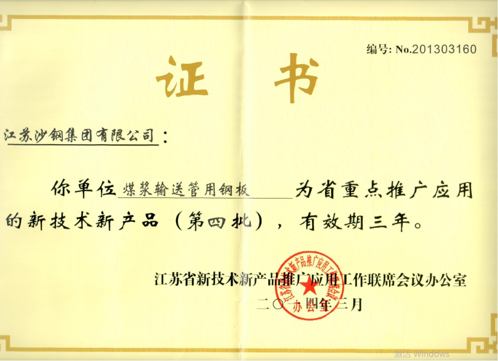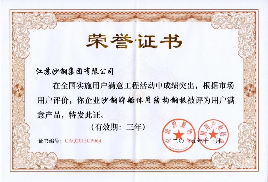 2014年度江苏省科学技术奖三等奖——海洋工程用调质热处理钢板的开发