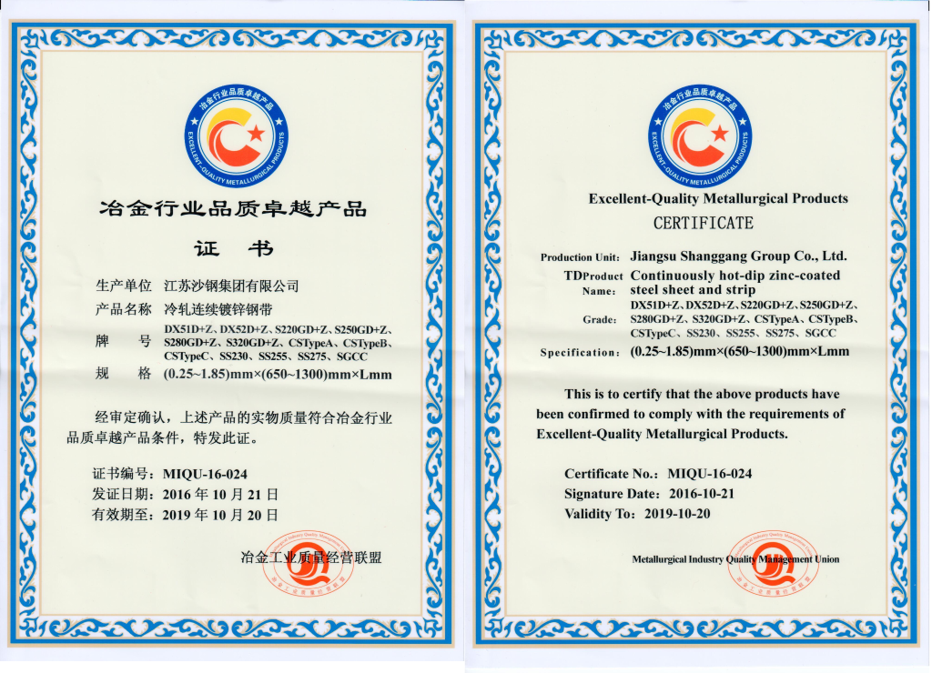 高新技术产品认定证书——低碳贝氏体型Q370qE桥梁钢